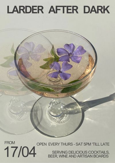 From Thursday to Saturday evenings, The Larder After Dark brings a relaxed, grown-up energy to the space you already know and love. Expect expertly made cocktails, carefully chosen wines, local beers, and generous sharing boards built around the produce and hospitality we’re known for.